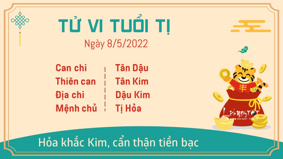 Tử vingày 08/05/2022 tức ngày 08/04 theo lịch âm năm Nhâm Dần của 12 con giáp: