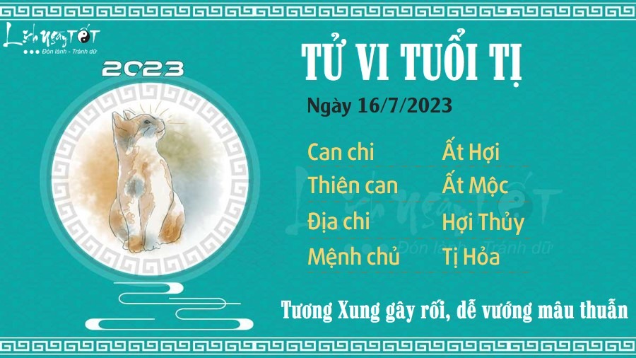 Dưới tác động xấu của cục diện Tương Xung, người tuổi Tị dễ gặp phải mâu thuẫn, tranh cãi với mọi người xung quanh. Bạn cần cẩn thận hơn trong lời ăn tiếng nói nếu không muốn gây thù chuốc oán với người khác. Người làm kinh tế nên hạn chế mâu thuẫn với khách hàng của mình. Nếu có sự cố gì xảy ra, bạn nên kiểm điểm bản thân mình trước tiên. Nếu không chủ động sửa lỗi và thay đổi, bạn sẽ không thể phát triển được như mong muốn. Thủy khắc Hỏa, người độc thân không nên đưa ra những tiêu chuẩn quá cao cho nửa kia tương lai của mình. Bản thân bạn không phải là người hoàn hảo, vì thế bạn cũng nên có cái nhìn bao dung hơn với mọi người xung quanh.