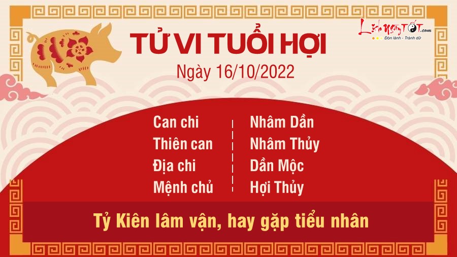 Tỷ Kiên lâm vận khiến tuổi Hợi mệt mỏi vì công việc, cuối tuần nhưng vẫn không được nghỉ ngơi, việc chất đống. Có Lục Hợp cục nâng đỡ, tiền bạc của Hợi khởi sắc hơn hẳn, dễ có thêm thu nhập bên ngoài. Nhất là với những người đang làm trong lĩnh vực bán hàng, kinh doanh, nhân sự, đối ngoại, các bạn được khách ủng hộ nên không phải sợ lỗ vốn, cứ vững tâm mà làm ăn. Vận tình cảm có tiến triển nhờ Thủy Mộc tương sinh.