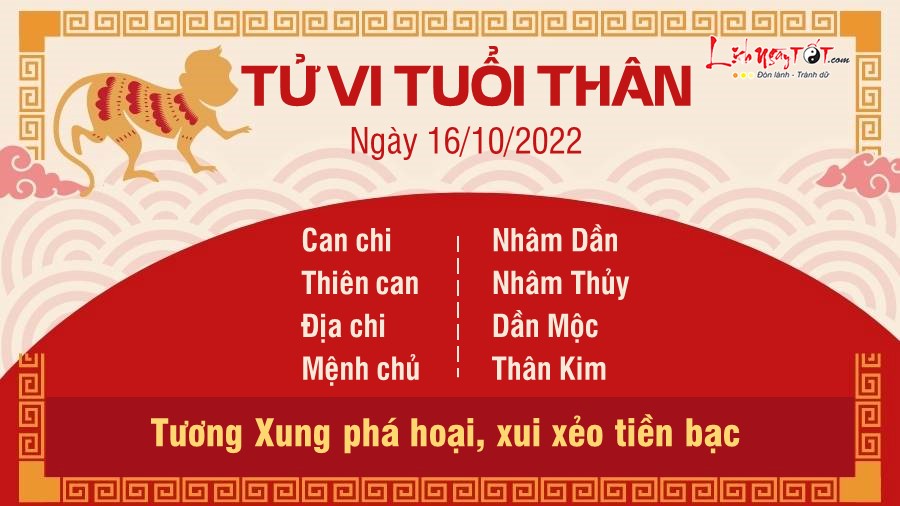 Tử vingày 16/10/2022 tức ngày 21/09 theo lịch âm năm Nhâm Dần của 12 con giáp: