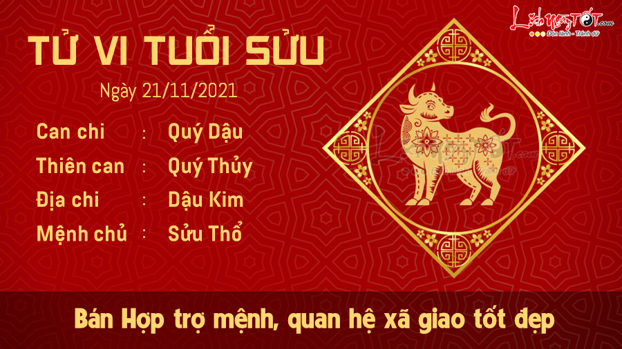 Tử vi hôm nay 21/11/2021 chỉ ra rằng, người tuổi Sửu được Bán Hợp độ mệnh nên mọi việc trở nên thuận lợi và suôn sẻ bất ngờ. Tuy nhiên, con giáp này chớ nên chủ quan bởi luôn có hung thần Thiên Quan rình rập quanh bạn. Chỉ một sơ suất nhỏ thôi là những kẻ xấu bụng sẽ ngay lập tức nhắm vào và gây trở ngại cho bạn.