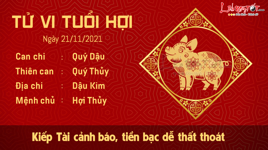 Xem tử vi ngày 21/11/2021 của 12 con giáp, Kiếp Tài cảnh báo người tuổi Hợi cần cẩn thận hơn với túi tiền của mình trong ngày hôm nay. Đừng dễ tin lời ngon ngọt của người khác mà dễ dàng vung tay mua sắm những món đồ không cần thiết. Chỉ trong phút chốc, một khoản tiền không nhỏ có thể bốc hơi vì tính bốc đồng của bạn đó.