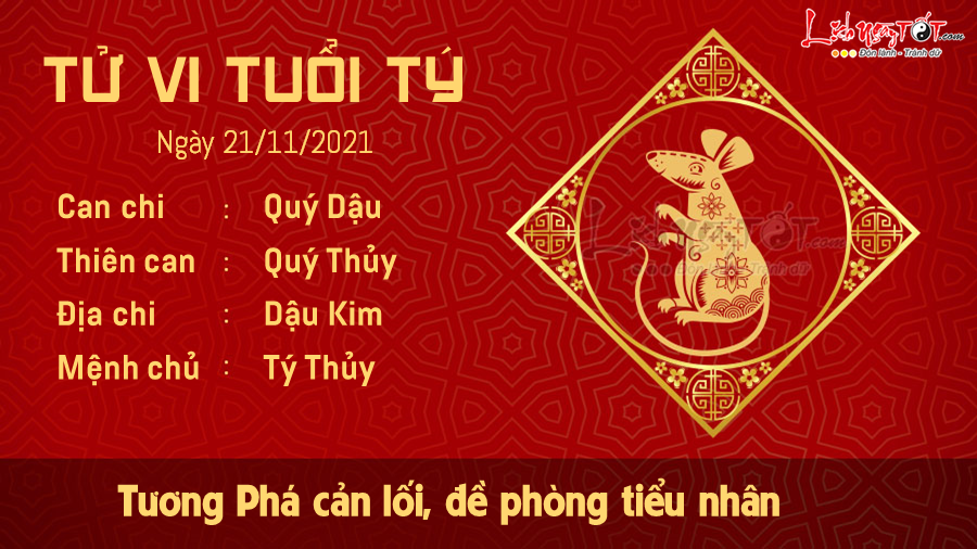 Xem tử vi ngày 21/11/2021 của 12 con giáp, cục diện Tương Phá ảnh hưởng không nhỏ đến vận trình hôm nay của người tuổi Tý. Con giáp này nên đề phòng những kẻ xấu bụng đang nhăm nhe đặt điều nói xấu sau lưng bạn.