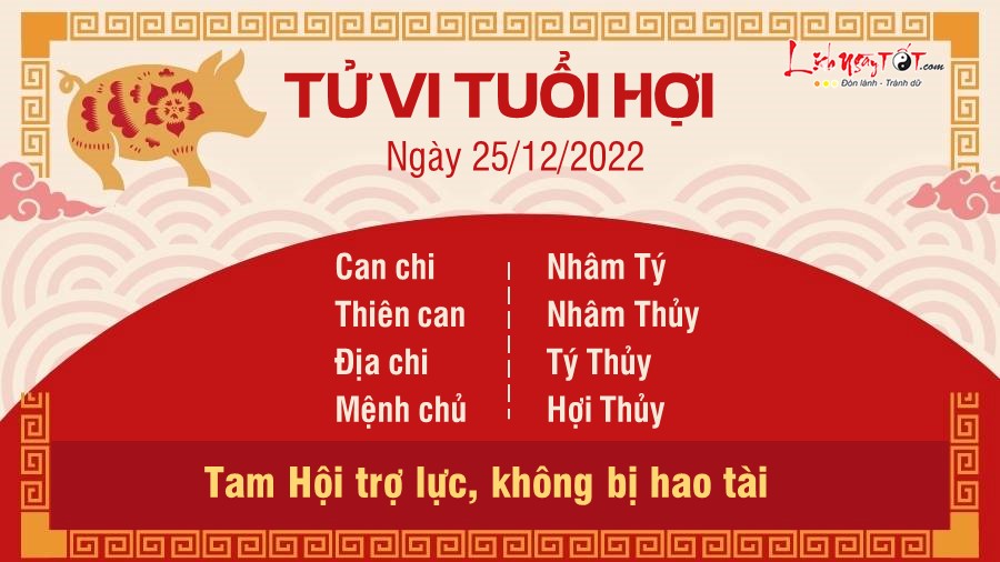 Tử vingày 25/12/2022 tức ngày 03/12 theo lịch âm năm Nhâm Dần của 12 con giáp: