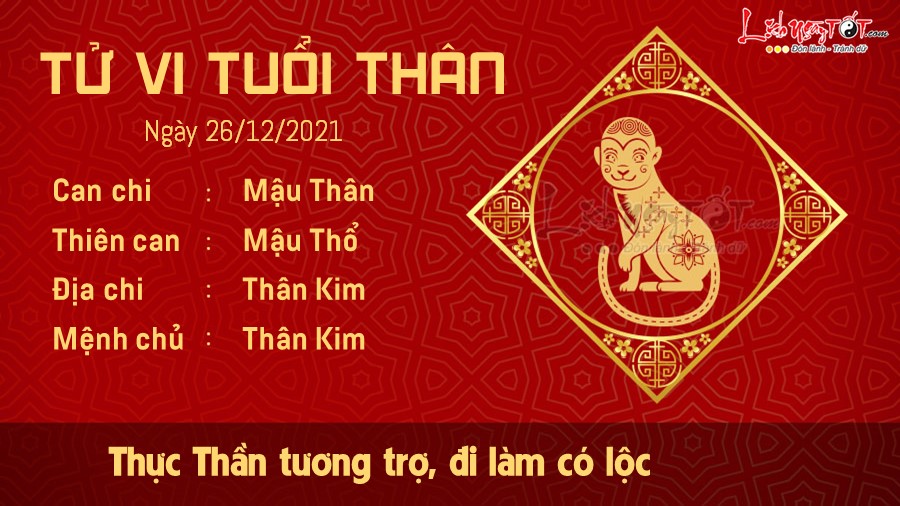 Xem tử vi ngày 26/12/2021 của 12 con giáp cho biết con giáp này có Thực Thần cát tinh độ mệnh nên dù ở nhà nhưng vẫn có lộc trong công việc. Bạn nào chịu khó làm thêm thì dễ được người lớn tuổi giúp đỡ.