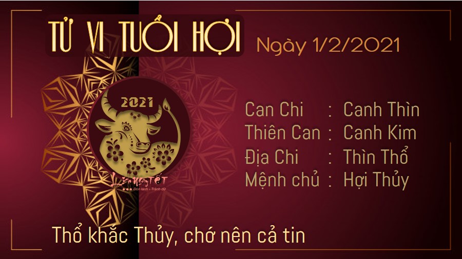 Thổ khắc Thủy, người tuổi Hợi còn độc thân nên biết cách giữ khoảng cách thích hợp với mọi người. Bạn chớ nên tin theo lời đường mật của người xa lạ, không nên dễ dãi, khiến bản thân phải gánh hậu quả sau này. Những người đã có gia đình quan tâm đến nửa kia nhiều hơn, không nên ích kỷ làm mọi việc theo cảm xúc của riêng mình. Muốn xây dựng gia đình hạnh phúc, bạn cần học cách đặt mình vào hoàn cảnh của nửa kia. Thực Thần chiếu cố giúp cho những người làm nghề tự do có cơ hội phát tài trong ngày hôm nay. Những mối đầu tư hoặc mối hợp tác trước đó của bạn đã mang lại hiệu quả.