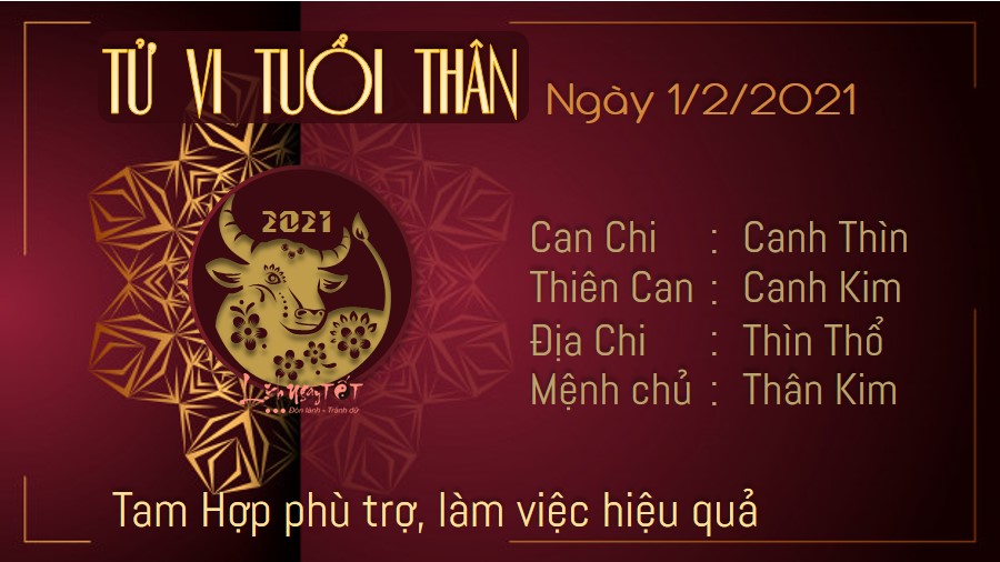 Tam Hợp phù trợ, người tuổi Thân làm việc gì cũng vô cùng hiệu quả. Nếu biết phát huy điểm mạnh của mình, sẵn sàng đứng ra nhận nhiệm vụ thì bạn hoàn toàn có cơ hội được lọt vào mắt xanh của người làm lãnh đạo, được cất nhắc trong tương lai. Những ai cần tham gia thi cử sẽ gặp nhiều yếu tố thuận lợi trong ngày hôm nay, tuy nhiên, bạn vẫn không được chủ quan, lơ là. Nếu muốn đạt được điểm số cao, bạn cần ôn luyện kĩ càng và giữ bình tĩnh khi bước vào phòng thi. Thổ sinh Kim cho thấy mối quan hệ giữa bản mệnh và người khác giới vô cùng hòa hợp. Nếu còn độc thân và đang có người tìm hiểu, bạn nên cởi mở hơn và cho đôi bên một cơ hội.
