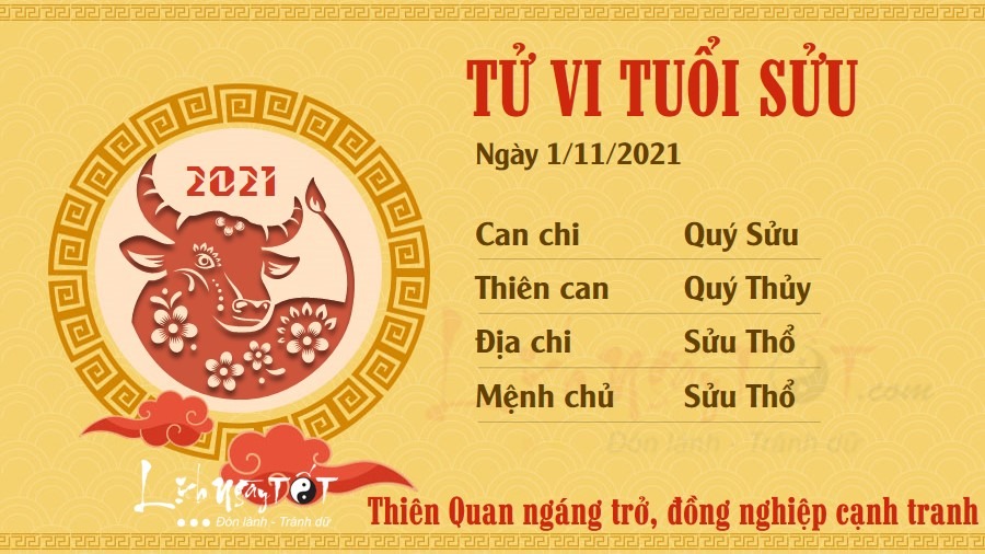 Thiên Quan ngáng trở, người tuổi Sửu phải đối diện với sự cạnh tranh khốc liệt của đồng nghiệp hoặc đối thủ. Có thể có kẻ sẽ giở trò xấu khiến bạn bị hiểu lầm, hoặc khiến công sức bấy lâu nay của bạn đổ sông đổ bể. Tuy nhiên, nghĩ trên phương diện tích cực thì sự cạnh tranh là không thể thiếu nếu bạn mong muốn mình tiến bộ hơn. Nếu như bạn tìm được một đối thủ xứng tầm, đối phương sẽ là nguồn độc lực thúc đẩy bạn không ngừng tiến về phía trước. Nếu có ý định xuất hành trong ngày hôm nay, bạn nên đi về hướng Đông Nam để gặp Hỷ Thần hoặc hướng Tây Bắc để gặp Tài Thần, giúp mọi việc được tiến hành một cách suôn sẻ và thuận lợi hơn.