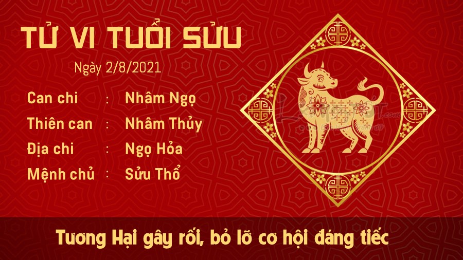 Do ảnh hưởng của cục diện Tương Hại, người tuổi Sửu chẳng thể nào bình tĩnh đối diện với rắc rối. Bạn thường xuyên thay đổi suy nghĩ và cách hành động, khiến cho nhiều người cảm thấy khó có thể đặt lòng tin được ở bạn. Thậm chí, bạn có thể đánh mất một vài cơ hội nhận nhiệm vụ quan trọng. Ở giữa tập thể, bản mệnh nên hạn chế những cảm xúc tiêu cực, gây ảnh hưởng đến bầu không khí xung quanh. Nếu cảm thấy mệt mỏi, bạn nên cho bản thân mình được nghỉ ngơi, không nên cố gắng làm việc quá sức, dễ gây ra sai sót không đáng có. Hỏa sinh Thổ cho thấy nửa kia của bạn luôn dịu dàng và thấu hiểu.