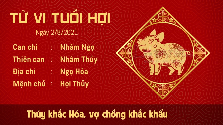 Thủy khắc Hỏa, người tuổi Hợi dễ khắc khẩu với nửa kia do đôi bên có ý kiến bất đồng. Khi cả hai người đều đang nóng nảy thì tốt nhất bạn nên tìm cách tạm dừng cuộc nói chuyện, đừng nên cố gắng kéo dài kẻo dễ lỡ lời tổn thương đối phương. Các mối quan hệ xã hội của bản mệnh cũng dễ gặp những điều không như ý. Không phải lúc nào bạn đối xử tốt với người ta cũng sẽ được đáp lại bằng một tình cảm tương xứng. Bạn cần phân biệt được ai là người xứng đáng với sự giúp đỡ của mình và ai là người mà mình nên tránh xa. Tỷ Kiên khuyên bạn mỗi khi có ý tưởng mới thì nên trao đổi với mọi người xung quanh nhiều hơn, đừng nên quyết định mọi việc một mình.