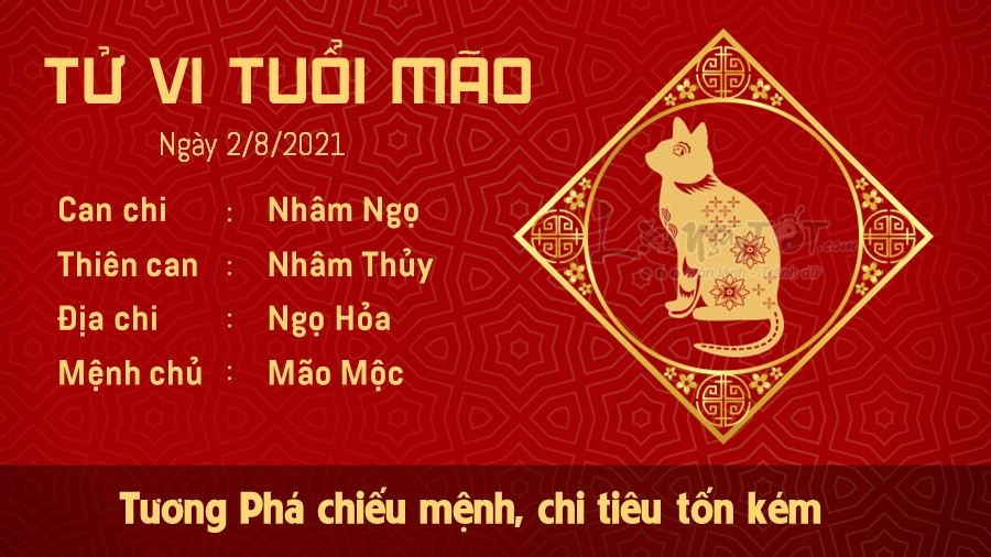 Tương Phá khiến tuổi Mão dễ rơi vào tình trạng chi tiêu tốn kém trong ngày hôm nay. Bạn có thể phải dùng tiền cho các hoạt động xã giao hoặc mua sắm nhu yếu phẩm. Để không rơi vào cảnh cháy túi, hãy luôn chú ý đến số tiền còn lại trong túi của mình. Đặc biệt, bạn cần chú ý bảo vệ tài sản, chớ sơ hở để rơi vào cảnh bị mất trộm, mất cắp. Đồng thời, bạn cũng cần giữ lý trí, chớ vội tin theo lời rủ rê, lôi kéo mua hàng của người khác. Muốn làm giàu, bạn cần phải nỗ lực bằng chính công sức của mình chứ không phải chờ đồng tiền từ trên trời rơi xuống. Ngày 24 âm lịch nhân thần ở vùng thắt lưng, dạ dày, kinh thủ dương minh đại tràng. Tránh mọi sự tổn thương, va chạm, mổ xẻ, châm chích tại vị trí này.