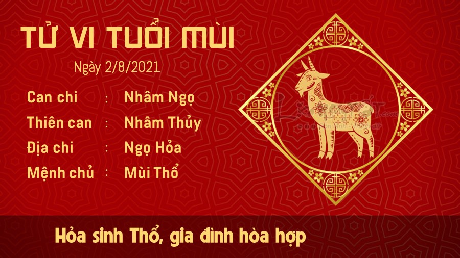Hỏa sinh Thổ cho thấy mối quan hệ giữa người tuổi Mùi và gia đình rất hòa hợp. Mỗi khi gặp chuyện gì khó khăn hoặc vui vẻ, các thành viên trong nhà đều cùng chia sẻ với nhau. Gia đình chính là hậu phương vững chắc và là động lực để bạn vươn lên, cho dù phải đối mặt với khó khăn gì đi chăng nữa. May mắn hơn, nửa kia của bạn còn là người rất thấu hiểu và tâm lý. Có nhiều khi người ấy có thể đoán được suy nghĩ và mong muốn của bạn mà không cần bạn phải nói thành lời. Để tình cảm thêm ngọt ngào, bạn đừng ngại dùng lời nói để bày tỏ tình cảm của mình. Chính Quan cho thấy con đường sự nghiệp của bạn đang rộng mở.