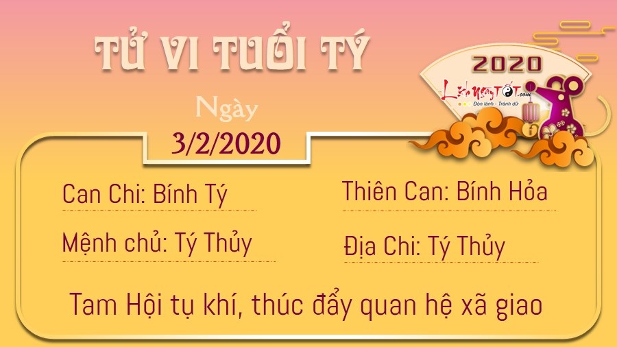 Tử vi ngày 03/02/2020 tức ngày 10/01 theo lịch âm năm Canh Tý của 12 con giáp: