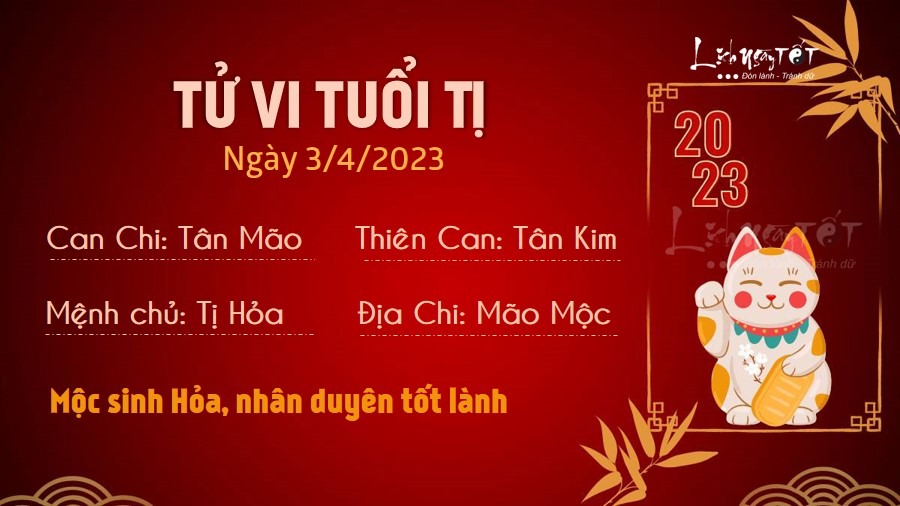 Mộc sinh Hỏa đem tới tin vui trên phương diện nhân duyên cho người tuổi Tị. Với bản tính cởi mở và tốt bụng, bạn đi đâu cũng nhận được sự yêu mến của mọi người. Có người sẽ được quý nhân giới thiệu cho những cơ hội quý giá trong hôm nay. Trên phương diện tình cảm, con giáp này đã thành thật hơn với những cảm xúc của mình và không còn giấu giếm suy nghĩ trong lòng nữa. Hai người thường xuyên trò chuyện nên nhiều khúc mắc được tháo gỡ, đôi bên thêm hiểu về nhau. Hôm nay trực Kiến là ngày tốt với xuất hành, giá thú nhưng tránh động thổ. Vì thế, bản mệnh nên sắp xếp kế hoạch để thực hiện công việc cho phù hợp, như vậy mới gặp nhiều may mắn.