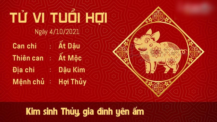 Kim sinh Thủy cho thấy mối quan hệ giữa người tuổi Hợi và nửa kia rất yên ấm. Bạn luôn dành cho nửa kia sự tôn trọng và luôn thảo luận mọi chuyện với người ấy, bất kể việc lớn hay việc nhỏ, nhờ thế mà vợ chồng luôn đồng lòng trong mọi công việc. Nếu còn độc thân, nhân duyên khác giới của bạn đang khá vượng. Bản mệnh nên nhiệt tình hơn trong các cuộc trò chuyện với mọi người, bởi rất có thể nhờ đó, bạn sẽ tìm ra được người phù hợp với mình. Chính Ấn chiếu mệnh, những người đi làm nhận được sự đánh giá cao của cấp trên và đồng nghiệp. Bạn cần đặt ra cho mình những mục tiêu cao xa hơn, không nên vội hài lòng với thực tại. Bạn vẫn còn có thể tiến xa hơn nữa trong tương lai.