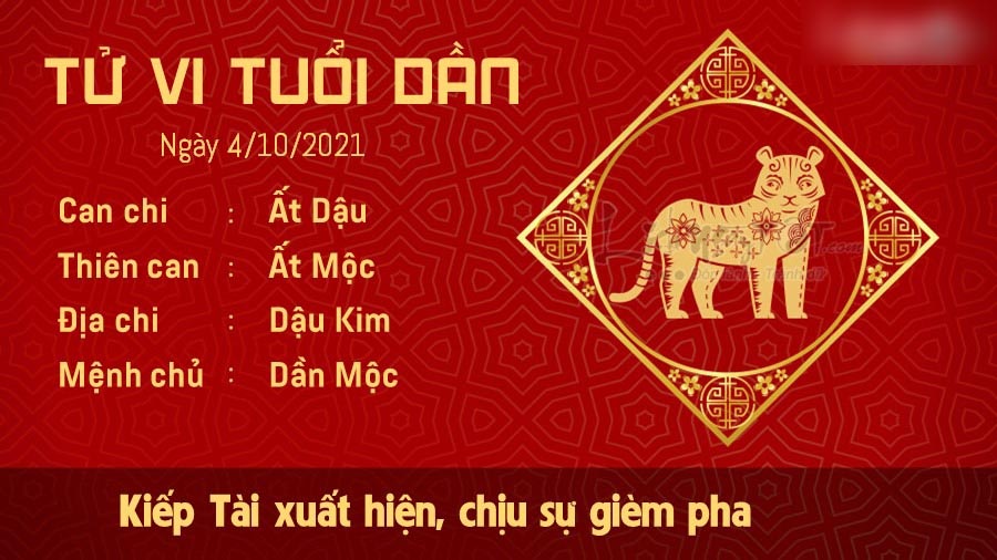Người tuổi Dần tiến triển không mấy tốt đẹp do sự xuất hiện của Kiếp Tài. Bạn có thể sẽ phải chịu sự nghi ngờ, thậm chí là gièm pha từ những người xung quanh. Trong tình huống này, hãy dùng thực tế để chứng minh bản thân mình. Con giáp này cũng cần phải cân nhắc kỹ lưỡng hơn khi đưa ra bất cứ quyết định nào, nhất là khi kế hoạch của bạn phải nhận quá nhiều sự phản đối như vậy. Chuyện tình cảm của con giáp này và người nhà có dấu hiệu bất ổn. Đôi bên có thể xích mích, mâu thuẫn với nhau vì quan điểm bất đồng. Hãy kìm nén cơn nóng giận, đừng nói năng hoặc hành động theo cảm tính, khiến nửa kia tổn thương.