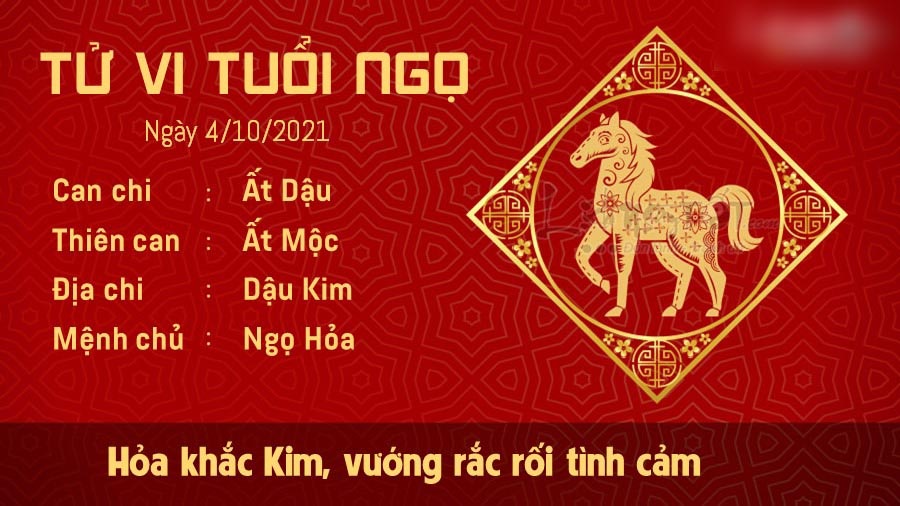 Hỏa khắc Kim, tuổi Ngọ dễ vướng phải rắc rối trong chuyện tình cảm. Người độc thân chớ nên dễ dàng tin vào lời ngon tiếng ngọt của người khác. Hãy dành thời gian để tìm hiểu kĩ về đối phương trước khi quyết định tiến xa hơn. Nếu đã có gia đình, bản mệnh cần phải biết giữ mình, chủ động tạo khoảng cách với mọi người xung quanh. Chớ nên vì một phút ham vui mà gây tổn thương cho những người thân yêu nhất, tạo điều kiện cho kẻ thứ ba chen chân vào hạnh phúc gia đình. Thương Quan giáng họa, mối quan hệ giữa con giáp này và lãnh đạo trở nên căng thẳng vì những quan điểm bất đồng. Nếu không biết kiềm chế tính nóng nảy, bạn có thể gây ra những hành động ảnh hưởng tới tương lai.