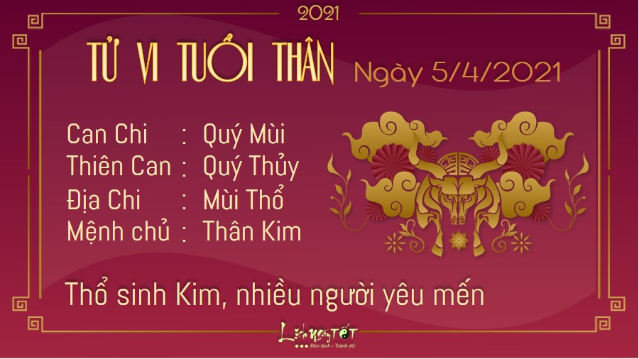 Người tuổi Thân sẽ trở nên rất vượng đào hoa vào ngày Thổ sinh Kim như hôm nay. Nhờ bản tính cởi mở, nhiệt tình, bản mệnh có thể dễ dàng gây ấn tượng tốt với những người khác giới ngay từ lần tiếp xúc đầu tiên. Tuy nhiên, nếu là người đã lập gia đình thì bạn lại cần giữ khoảng cách với những người khác. Đừng vì một phút ham vui mà tạo cơ hội cho kẻ thứ ba chen chân, gây tổn hại đến hạnh phúc gia đình và danh tiếng của cá nhân. Chính Ấn cho thấy bạn tạo lập được vị thế của mình. Cách giải quyết vấn đề nhanh chóng và đúng đắn giúp bạn được nhiều khâm phục và tin tưởng. Hãy tiếp tục phát huy phong độ của mình thật ổn định.