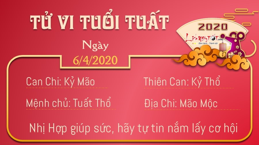 Nhờ có Nhị Hợp nâng đỡ, người tuổi Tuất có thể sẽ tìm được mối đầu tư, hợp tác giá trị trong hôm nay. Hãy nhanh tay nắm bắt cơ hội, nếu để lỡ, bạn sẽ phải nuối tiếc trong tương lai. Bản mệnh luôn muốn nhận được sự ngưỡng mộ của người khác, song bạn không nên giấu giếm hoặc lấp liếm khi gặp sai lầm hoặc vấn đề khó giải quyết, vì việc này không chỉ gây hại cho chính bạn mà có thể ảnh hưởng đến cả công việc chung nữa. Bạn nên chia sẻ để được mọi người giúp đỡ. Mộc khắc Thổ, bản mệnh và nửa kia có thể bất đồng quan điểm với nhau trên một phương diện nào đó. Bạn nên chờ cả hai cùng bình tĩnh lại rồi thảo luận sau, bởi trong lúc nóng nảy thì sẽ chẳng có ai muốn nghe theo lời của ai.