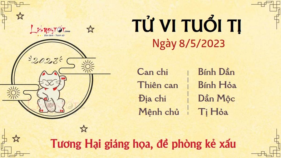 Người tuổi Tị phải chịu nhiều tác động xấu do cục diện Tương Hại mang lại. Con giáp này hãy luôn đề phòng những người chủ động tiếp cận và nhiệt tình bất thường với mình. Có thể kẻ xấu đang cố gắng khiến bạn lơ là cảnh giác để lợi dụng bạn. Người làm ăn kinh doanh cũng phải cẩn thận trước những chiêu trò cạnh tranh, chơi xấu của đối thủ. Hãy luôn có lòng đề phòng người khác, chớ nên cả tin, hãy kiểm chứng thông tin và tình hình thực tế kĩ càng trước khi đưa ra các quyết định. Nếu có ý định đi xa trong ngày hôm nay thì bản mệnh nên đi về hướng Tây Nam để gặp Hỷ Thần hoặc hướng Đông để gặp Tài Thần. Đây là hai hướng sẽ mang lại nhiều may mắn, giúp công việc của bạn thêm phần thuận lợi.