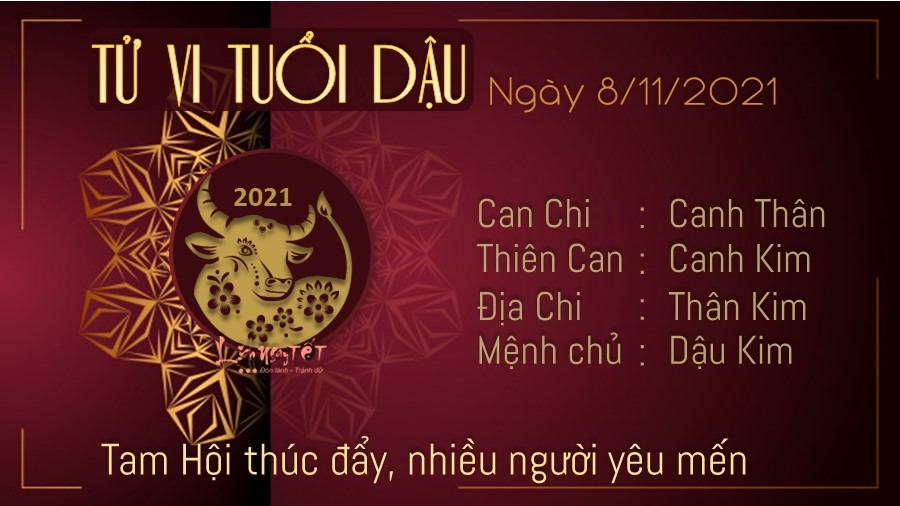 Dưới sự thúc đẩy của Tam Hội, người tuổi Dậu nhận được sự yêu mến của mọi người xung quanh. Dù gặt hái được thành công đi chăng nữa, bạn cũng luôn nhắc nhở mình khiêm tốn, bởi mọi người xung quanh luôn có những ưu điểm xứng đáng để học tập. Thái độ khiêm tốn của bạn còn có thể ghi điểm trong mắt lãnh đạo. Cấp trên có thể trao cho bạn thêm nhiều nhiệm vụ khó, giúp bạn khẳng định bản lĩnh của mình. Đừng chần chừ, do dự, hãy nhanh chóng nắm bắt ngay những cơ hội trước mắt nhé. Hôm nay trực Thu là ngày thu hoạch tốt nhưng kỵ khởi công, xuất hành, an táng. Vì thế, bạn nên sắp xếp công việc cho phù hợp để quá trình thực hiện gặp nhiều điều thuận lợi, may mắn hơn.