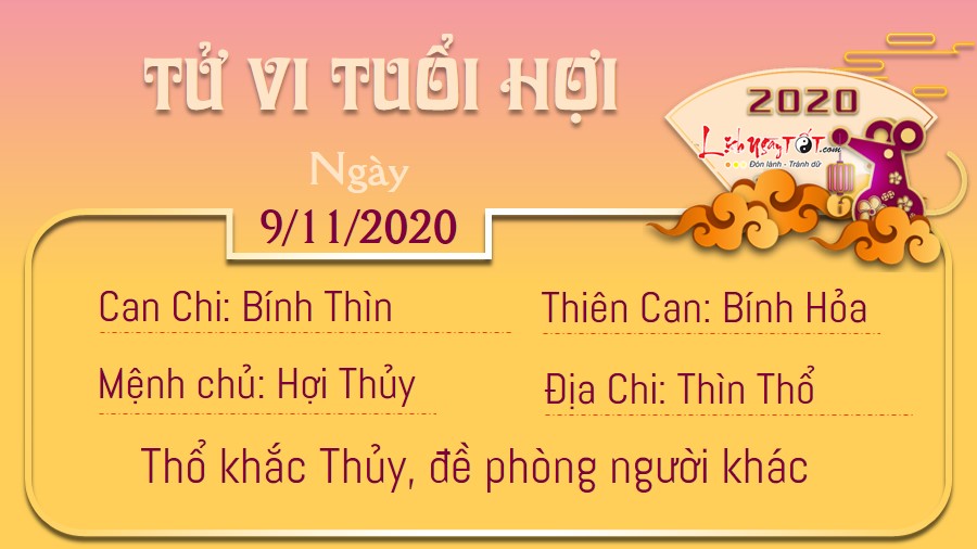 Thổ khắc Thủy, người tuổi Hợi còn độc thân cần phải chú ý đề phòng những người tiếp cận mình. Bạn nên biết cách giữ khoảng cách thích hợp, không nên buông thả bản thân nhất là trước những kẻ có ý đồ không trong sáng, vì một phút lơ là mà gây ảnh hưởng danh tiếng. Những người đã có gia đình quan tâm đến nửa kia nhiều hơn, không nên ích kỷ làm việc theo cảm xúc của riêng mình mà không để tâm đến cảm xúc của nửa kia. Thiên Quan khuyên bản mệnh nên tránh xa những người có quyền cao chức trọng ở nơi làm việc cũng như trong chính quyền, nếu không bạn dễ vướng phải những rắc rối không dễ gì giải quyết.