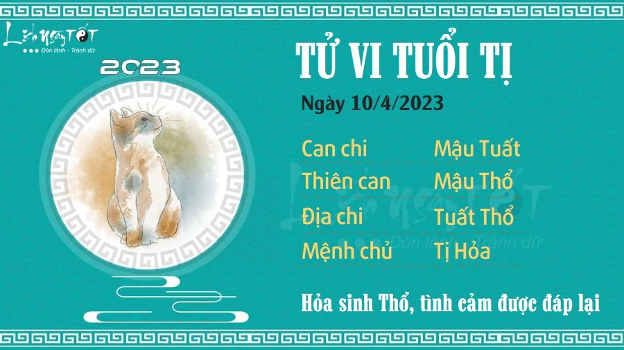 Hỏa sinh Thổ, người tuổi Tị nhận được tin vui trên phương diện tình cảm vào thời điểm này. Có thể tình cảm mà bạn ấp ủ bao lâu nay đã được đáp lại. Hãy trân trọng những gì mình đang có để tình yêu có thể kéo dài mãi mãi. Với những người có gia đình, bản mệnh là một người vợ, người chồng có trách nhiệm, luôn chăm lo cho các thành viên trong gia đình. Sự hi sinh của bạn cũng nhận được sự trân trọng của tất cả mọi người. Thiên Ấn che chở, con đường sự nghiệp của bạn cũng không có gì đáng lo. Những kế hoạch bạn đặt ra từ trước tiến hành một cách suôn sẻ. Thậm chí bạn còn được nhận thêm sự chỉ dẫn của quý nhân, khiến công việc ngày một mở mang.