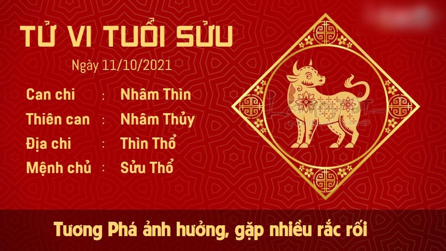 Chịu tác động của cục diện Tương Phá, người tuổi Sửu dễ cảm thấy thất vọng vì mọi việc đang tiến triển thuận lợi bỗng dưng gặp trục trặc ngoài ý muốn trong ngày hôm nay. Bạn nên tự cổ vũ mình cố gắng hơn chứ đừng bỏ dở giữa chừng. Để công việc bớt đi phần rắc rối, con giáp này còn cần đề phòng kẻ tiểu nhân có thể tác oai tác quái bất cứ lúc nào. Hãy luôn kiên định với mục tiêu của mình, chớ nên dễ dàng tin theo lời rủ rê bùi tai của người khác. Trong quá trình hợp tác, bạn cũng cần tìm hiểu rõ đối tác của mình. Thai thần ở hướng chính Bắc phía ngoài nhà kho, tổ chim hoặc lồng chim, thai phụ không nên lui tới tiếp xúc nhiều tránh làm động Thai thần, ảnh hưởng đến cả người mẹ và thai nhi.