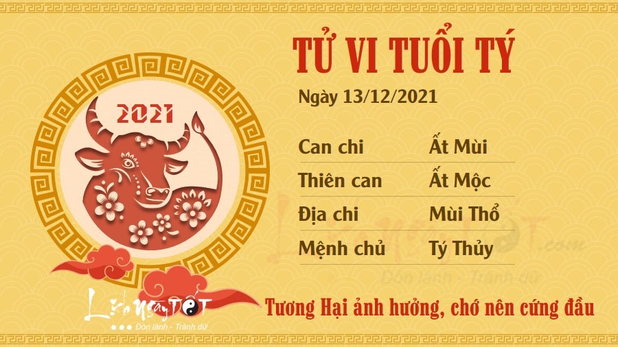 Người tuổi Tý phải chịu sức ảnh hưởng của cục diện Tương Hại nên công việc vướng phải nhiều khó khăn. Nếu bạn cứ thích khăng khăng làm theo ý mình thì chỉ càng dễ đâm đầu vào ngõ cụt hơn mà thôi. Con giáp này hãy thử thay đổi góc độ quan sát vấn đề và lắng nghe kiến nghị của mọi người xung quanh nhiều hơn, bất kể đó là người trẻ tuổi hay có chức vị thấp hơn mình. Có thể người ngoài sẽ nhìn ra điều mà bạn không nhận thấy. Thổ khắc Thủy cho thấy mối quan hệ giữa bạn và nửa kia không thực sự yên bình. Dù hai người không mâu thuẫn nhưng tình cảm đang dần trở nên lạnh nhạt. Hãy nhanh chóng khắc phục tình trạng này, chớ để kẻ thứ ba có cơ hội chen chân.