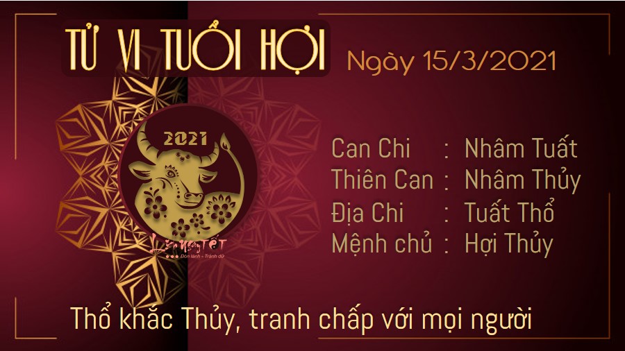 Thổ khắc Thủy, các mối quan hệ xã hội của người tuổi Hợi không được thuận lợi trong ngày hôm nay. Những mâu thuẫn, bất đồng với bạn bè hoặc đồng nghiệp khiến mọi chuyện càng lúc càng trở nên căng thẳng hơn. Trong gia đình, bạn thích làm theo ý mình mà không để ý đến cảm nhận của người khác. Hãy biết đặt mình vào vị trí của người khác, đừng ích kỷ coi việc mọi người chiều theo ý mình là hiển nhiên. Trên phương diện sự nghiệp, Tỷ Kiên khuyên bạn hãy cẩn thận trong mọi việc bởi kẻ tiểu nhân đang tìm cách tiếp cận bạn. Hãy cố gắng làm mọi việc dựa trên công sức của mình, dù bây giờ có vất vả nhưng bạn là con giáp khổ trước sướng sau mà.