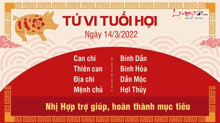 Nhị Hợp giúp người tuổi Hợi nhanh chóng chạm tay được tới những mục tiêu đã đề ra. Bạn đã luôn cố gắng không ngừng suốt thời gian qua, đồng thời lại nhận được sự giúp đỡ của mọi người xung quanh nên thành công là điều dễ hiểu. Người trẻ tuổi nên học thêm những kiến thức mới mẻ cho mình và tìm ra những hướng đi đúng đắn cho tương lai. Nếu còn băn khoăn vấn đề gì, bạn cũng có thể hỏi ý kiến những người giàu kinh nghiệm, chắc chắn ai cũng sẽ sẵn sàng giúp đỡ bạn. Thủy sinh Kim, nhân duyên khác giới của người độc thân khá vượng. Nếu có thể, bản mệnh nên nhiệt tình tham gia vào những buổi tụ tập, giao lưu, bạn có thể sẽ tìm ra được người phù hợp với mình ở đó. Khi đã có thiện cảm với ai, đừng ngại ngần bắt chuyện với người đó.