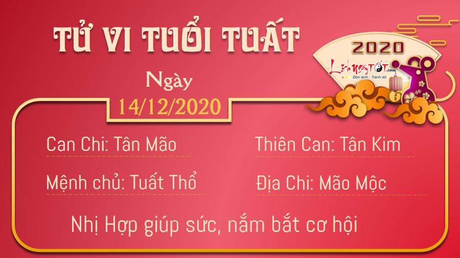 Nhờ có Nhị Hợp nâng đỡ, người tuổi Tuất làm ăn thuận lợi trên nhiều lĩnh vực. Trong ngày hôm nay, nếu nhanh tay nắm bắt cơ hội, con giáp này sẽ tìm được mối đầu tư, hợp tác có giá trị, giúp cải thiện tình hình tài chính nhanh chóng. Dù ai cũng muốn nhận được sự ngưỡng mộ của người khác, song đừng lấy đó làm cái cớ để thường xuyên lấp liếm đi những vấn đề mà mình chưa hiểu rõ hoặc làm sai. Cần biết rằng dũng cảm nhận lỗi sẽ giúp bạn phát triển nhanh chóng hơn. Mộc khắc Thổ, bản mệnh và nửa kia có thể bất đồng quan điểm với nhau trên một phương diện nào đó. Bạn nên chờ cả hai cùng bình tĩnh lại rồi thảo luận sau, chớ nên nói dai, nói dài trong lúc đôi bên cùng nóng nảy.