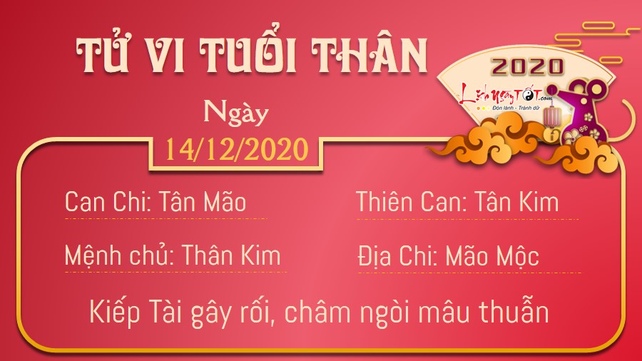 Kiếp Tài gây họa, người tuổi Thân dễ vướng phải rắc rối với đồng nghiệp. Bạn không nên là người châm ngòi mâu thuẫn. Nếu có việc gì không phù hợp với quan điểm của mình, bạn cũng nên bình tĩnh trao đổi với mọi người. Trước khi đi đến một quyết định nào đó, bạn cũng nên học cách lắng nghe góp ý của người khác, không nên cứng đầu cứng cổ làm việc theo ý của mình. Sự bốc đồng sẽ khiến bạn lâm vào rắc rối. Kim khắc Mộc, bạn và nửa kia có thể xảy ra tranh cãi trong ngày hôm nay. Vợ chồng có một vài quan điểm không phù hợp với nhau là chuyện thường, bạn chớ nên vì điều ấy mà thất vọng, nổi nóng hoặc nói ra những lời gây tổn thương đối phương.