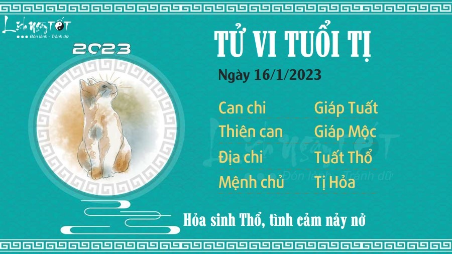 Hỏa sinh Thổ, người tuổi Tị còn độc thân có thể nảy sinh tình cảm với một người bạn ở quanh mình. Thế nhưng, bạn không cần phải vội vàng bày tỏ với đối phương ngay. Hãy dành thời gian cân nhắc kĩ càng và chọn thời điểm thích hợp nhé. Nếu đã có nửa kia, bạn và người ấy có rất nhiều quan điểm chung trong cuộc sống, nhờ thế mà đôi bên càng lúc càng hợp nhau. Càng đến gần những ngày Tết âm lịch, bạn càng thấy rằng đối phương là một nửa không thể tách rời. Thực Thần phù trợ, tình hình tài chính của bản mệnh khá dư dả trong ngày hôm nay, đặc biệt là với những người làm công việc tự do. Bạn nhận được sự tin tưởng của đối tác nên đơn hàng lúc nào cũng tấp nập.