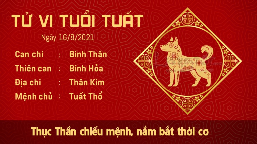 Thực Thần chiếu mệnh, người tuổi Tuất làm ăn có lộc trong ngày hôm nay. Bạn không nên chần chừ, do dự trước những cơ hội đầu tư, kinh doanh quá lâu. Hãy quyết đoán nắm bắt, bạn chắc chắn sẽ thu được lợi nhuận trong nay mai. Con giáp này là người ôn hòa và rộng rãi, tuy nhiên, trong lĩnh vực chi tiêu, bạn cần phải lập những kế hoạch rõ ràng và cụ thể hơn. Nếu cứ chi tiêu hoang phí thì dù có kiếm được nhiều tiền đến đâu, một ngày nào đó cũng sẽ cháy túi thôi. Trên phương diện tình cảm, Thổ sinh Kim, người tuổi này rất vượng đào hoa. Nếu đã có đối tượng thầm mến và còn độc thân, bạn nên cho đôi bên một cơ hội tìm hiểu về nhau kĩ hơn.