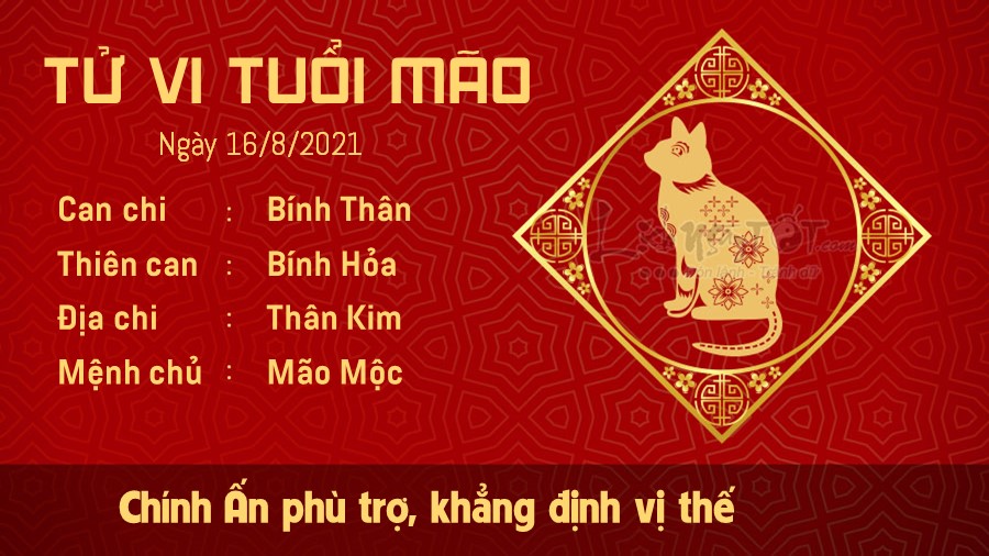 Chính Ấn phù trợ, người tuổi Mão có thể vươn lên vị trí mà mình hằng mong muốn bấy lâu. Bạn được mọi người nể phục vì đức tính thông minh, nhân hậu và không ham danh lợi của mình. Tuy nhiên, bạn cũng không nên vội hài lòng với hiện tại. Bạn vẫn còn có khả năng thăng tiến lên vị trí cao hơn hiện tại rất nhiều, đừng giậm chân tại chỗ, tạo cơ hội để người khác vượt qua. Kim khắc Mộc, mối quan hệ giữa con giáp này và người nhà không quá yên bình. Dù bận rộn đến mấy, có lẽ đôi bên vẫn cần dành nhiều thời gian để trò chuyện với nhau hơn, đừng để quan hệ vợ chồng ngày càng trở nên lạnh nhạt và kẻ thứ ba chen chân.