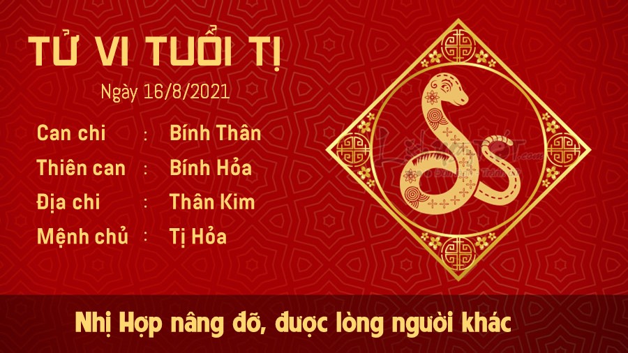 Nhị Hợp phù trợ, người tuổi Tị nhanh chóng nắm bắt được mong muốn của người khác nên luôn có cách cư xử khéo léo, chẳng mất lòng ai. Bạn nhanh chóng chinh phục được mọi người xung quanh, thậm chí lọt vào mắt xanh của quý nhân. Trong cuộc sống, bạn là người rất hăng hái giúp đỡ bạn bè, đồng nghiệp, thậm chí là cả người xa lạ, cho dù đối phương có bày tỏ mong muốn của mình hay không. Những người được bạn giúp vào thời điểm này có thể sẽ giúp đỡ lại bạn trong tương lai. Đáng buồn, Hỏa khắc Kim cho thấy có vấn đề xảy ra trong mối quan hệ gia đình của bản mệnh. Vợ chồng bạn liên tiếp chiến tranh lạnh vì những quan điểm bất đồng.