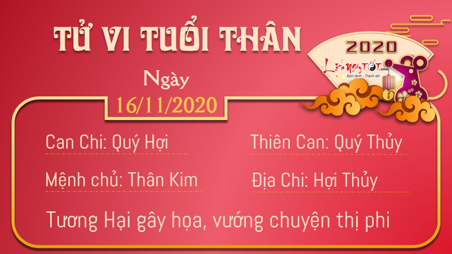 16/11/2020 13:00Tử vi thứ 2 ngày 16/11/2020 của 12 con giáp: Mùi mắc bẫy, Tý gặp quý nhân