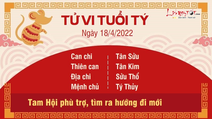 Người tuổi Tý được Tam Hội nâng đỡ nên bắt tay vào công việc gì cũng thuận lợi. Bạn thậm chí tìm ra được hướng đi mới cho riêng mình, nhờ vậy hiệu suất công việc được nâng cao hơn hẳn. Người làm đầu tư, kinh doanh có thể gặp được người có cùng chí hướng trong ngày hôm nay. Hãy nhanh chóng giữ quan hệ hợp tác với đối phương, đôi bên có thể hợp tác ăn ý, giúp tiền đổ về đầy túi. Tuy nhiên, Thổ khắc Thủy cho thấy vợ chồng bạn dễ rơi vào cảnh lục đục. Bạn thường xuyên nảy sinh những nghi ngờ vô căn cứ với đối phương, khiến các cuộc tranh cãi nổ ra liên tiếp. Hãy chú ý cách ứng xử của mình, đừng làm đối phương tổn thương.