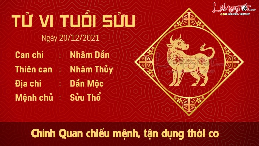 Chính Quan chiếu mệnh, người tuổi Sửu nên tận dụng thời cơ hiếm có này để khẳng định giá trị bản thân, củng cố địa vị của mình trong tập thể. Nếu là người làm công ăn lương, bạn có thể truyền cảm hứng cho mọi người xung quanh. Người làm lãnh đạo đưa ra được những quyết sách đúng đắn giúp tập thể phát triển nhanh chóng hơn. Hơn nữa, bạn còn luôn thấu hiểu nhân viên của mình và có biện pháp phân công công việc hợp lý để mỗi người đều có thể phát huy điểm mạnh. Mộc khắc Thổ, tiếc rằng quan hệ giữa bạn và nửa kia lại không được êm đềm. Có lẽ hai người đều quá ngang ngạnh nên không nghe lọt tai ý kiến của đối phương. Tuy nhiên, nếu cứ giữ mãi tình cảm này, quan hệ giữa hai người sẽ dần xa cách.