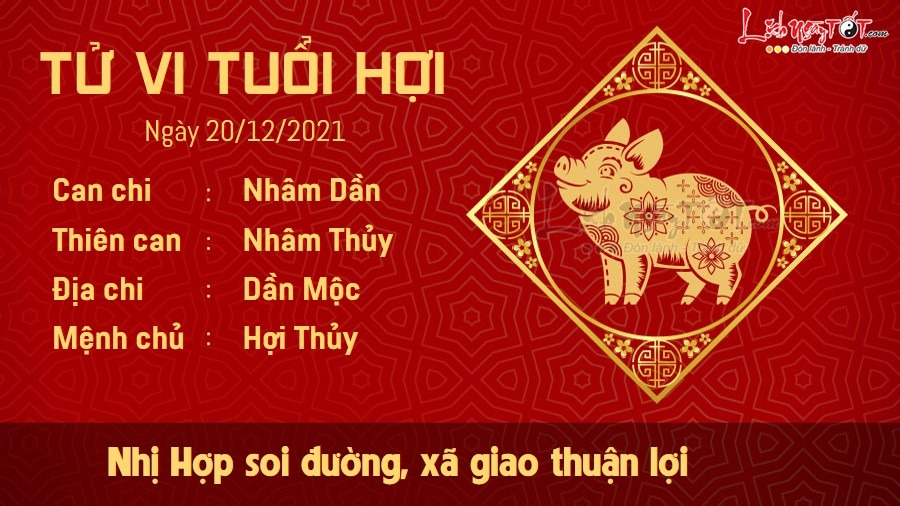 Nhị Hợp giúp người tuổi Hợi dễ dàng xây dựng những mối quan hệ xã giao thuận lợi. Bạn nhận biết được ai là người tốt, có thể đem lại ảnh hưởng tích cực cho mình cũng như ai là người xấu, tiếp cận mình chỉ để kiếm lợi. Bản mệnh cũng không sợ phải đối diện với những nhiệm vụ khó, bởi bạn luôn tràn trề quyết tâm và tinh thần phấn đấu. Đồng thời, bạn cũng biết xung quanh mình luôn có rất nhiều người sẵn sàng giúp đỡ, định hướng cho bản thân mình. Hôm nay trực Mãn là ngày thích hợp để cầu tài, cầu phúc, tế tự. Vì thế, nếu bạn đã lên kế hoạch làm những công việc liên quan đến lĩnh vực này thì hãy thực hiện ngay, chớ chần chừ, do dự bỏ lỡ thời cơ đáng quý.