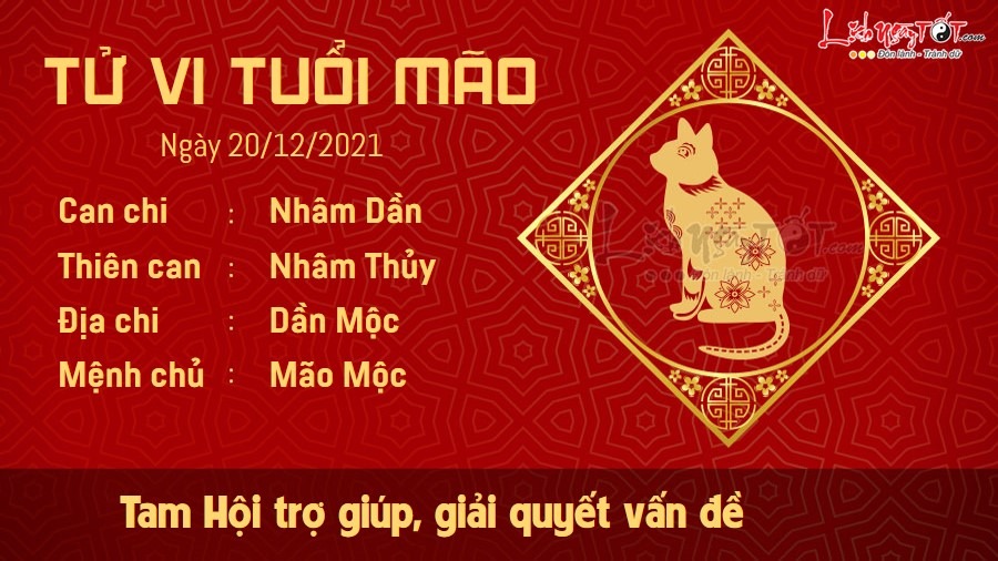 Nhờ Tam Hội trợ giúp, người tuổi Mão có thể giải quyết nhanh chóng những vấn đề còn tồn tại trong suốt khoảng thời gian vừa qua. Bạn đã biết thay đổi góc độ quan sát vấn đề nên có thể tự tìm ra hướng đi mới mà không cần sự trợ giúp của bất cứ ai. Nếu đã lên kế hoạch thực hiện công việc trong ngày hôm nay thì bạn nên bắt tay vào làm ngay, tin rằng cát khí sẽ giúp cho mọi việc tiến triển một cách vô cùng thuận lợi. Bạn thậm chí có cơ hội phát hiện ra những tiềm năng mà trước đó chưa hề nhận ra. Tuy nhiên, Mộc vượng khuyên bạn dù có tinh thần làm việc hăng say đến mấy, bạn cũng nên chú ý đến sức khỏe. Hãy có chế độ làm việc và nghỉ ngơi khoa học, đừng nên bắt cơ thể làm việc mệt mỏi quá sức, vừa giảm hiệu suất vừa dễ mắc sai lầm.