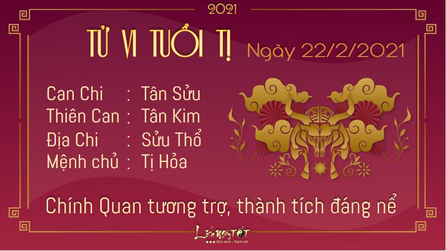 Chính Quan tương trợ, người tuổi Tị theo con đường học hành, nghiên cứu sẽ dễ dàng gặt hái được thành tích đáng nể trong ngày hôm nay. Mọi kiến thức đã có sẵn trong đầu bạn, quan trọng là bạn thể hiện ra như thế nào mà thôi. Người làm công ăn lương cũng có 1 ngày làm việc đầy hứa hẹn. Cơ hội sẽ xuất hiện ngay trước mắt bạn, nếu bạn có đủ tự tin để nắm bắt thì chắc hẳn, cánh cửa thăng quan tiến chức sẽ rộng mở trước mắt bạn thôi. Hỏa sinh Thổ, người tuổi này có mối quan hệ rất hòa hợp với nửa kia của mình. Đôi bên luôn thấu hiểu và bao dung cho nhau. Khi gặp phải bế tắc, bạn có thể chia sẻ với người ấy để đôi bên có thể chung sức vượt qua sóng gió.