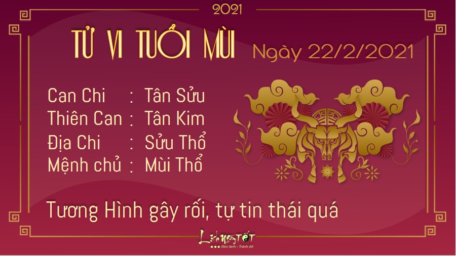 Ngày phạm cục diện Tương Hình, người tuổi Mùi chớ nên quá mức tự tin, vì như vậy bạn dễ rơi vào trạng thái chủ quan và vướng vào rắc rối lúc nào chẳng hay. Hãy chú ý lắng nghe lời khuyên của người khác. Trong giao tiếp, con giáp này cũng cần đặc biệt chú ý đến cách ăn nói của mình, tránh làm mất lòng người đối diện, nhất là những ai thiện chí với mình. Xây dựng các mối quan hệ tốt đẹp sẽ giúp ích cho bạn rất nhiều sau này. Thổ vượng khuyên bạn chớ nên cố chấp với suy nghĩ của chính mình, bởi chưa chắc hướng suy nghĩ hiện tại của bạn đã là chính xác. Đôi khi, thay đổi góc độ quan sát vấn đề sẽ giúp bạn tìm ra hướng giải quyết công việc đơn giản hơn.