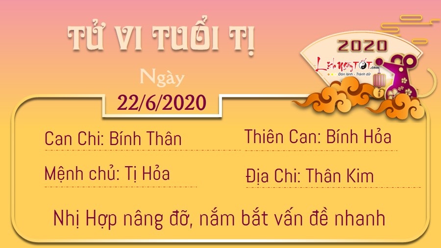 Nhị Hợp phù trợ, tuổi Tị nhanh chóng nắm bắt được gốc rễ vấn đề dù vấn đề ấy có hoàn toàn mới mẻ đi chăng nữa. Đồng thời, bạn cũng là người khiêm tốn, chịu khó thu ý kiến đóng góp. Trong cuộc sống, có thể bạn là người rất hăng hái giúp đỡ người khác, tuy nhiên không phải ai cũng biết ơn bạn vì điều đó. Vì thế, một khi đã quyết định giúp đỡ ai thì hãy cứ vô tư, đừng so đo thiệt hơn để tránh ảnh hưởng tâm trạng. Hỏa khắc Kim, mối quan hệ gia đình của bạn mệnh không mấy êm ấm. Vợ chồng bạn có thể chiến tranh lạnh vì những quan điểm bất đồng với nhau. Hãy nhanh chóng giải quyết những khúc mắc đang tồn tại, đừng để tình cảm đôi bên phai nhạt.
