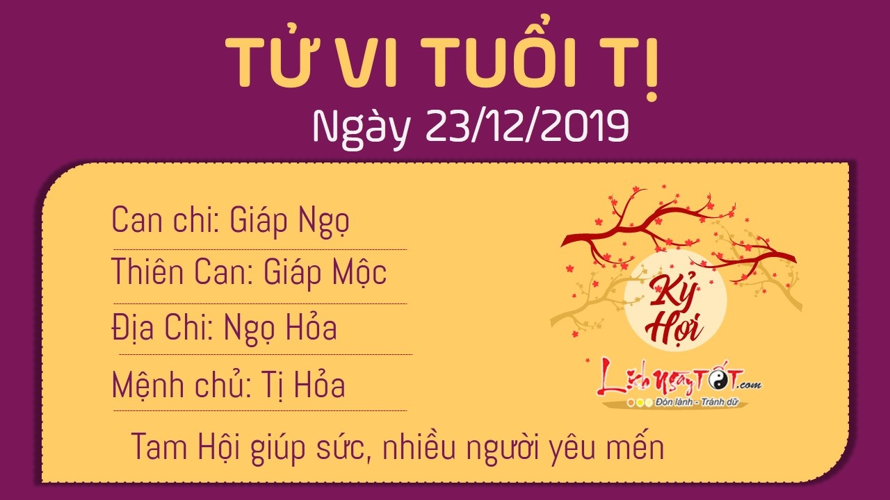 Công việc của người tuổi Tị tiến triển thuận lợi nhờ có sự trợ giúp của Tam Hội. Bạn được nhiều người yêu mến vì có thái độ cư xử nhã nhặn. Thậm chí, con giáp này có thể nhận được sự giúp đỡ của quý nhân trong ngày hôm nay. Một khi cơ hội xuất hiện trước mắt, bạn nên nhanh chóng nắm bắt ngay, chớ nên nghi ngờ khả năng của chính mình và chần chừ do dự quá lâu, để cơ hội trôi qua đáng tiếc. Những cơ hội quý giá chỉ xuất hiện một lần. Tuy nhiên Thủy khắc Hỏa, người tuổi này cần dành nhiều sự quan tâm cho người nhà của mình hơn. Bạn nên hiểu rằng đó là những người sẽ gắn bó và đi cùng với bạn cả đời, đừng mơ mộng đến những con người hoặc sự việc phù phiếm bên ngoài.
