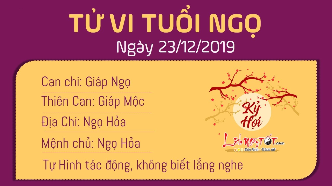 Cục diện Tự Hình gây ra những ảnh hưởng xấu cho người tuổi Ngọ. Bản mệnh rất hiếu thắng, luôn cho mình là người tài giỏi nhất và không chịu được những lời khích bác của người khác. Chính vì vậy, bạn dễ nổi nóng và đưa ra những quyết định thiếu chính xác. Ai mà chả mong được nghe những lời khen ngợi từ phía người ngoài, tuy nhiên, bạn nên ý thức rõ giá trị của bản thân, biết rằng nếu muốn tiến bộ nhanh chóng thì cần nghiêm túc lắng nghe những lời nhận xét chân thành của mọi người. Hôm nay trực Phá là ngày thích hợp để tháo dỡ nhà cửa hoặc khám chữa bệnh. Nếu thấy cơ thể khó chịu thì bạn nên đi khám ngay, phát hiện bệnh càng sớm thì càng dễ dàng trong việc chữa trị.