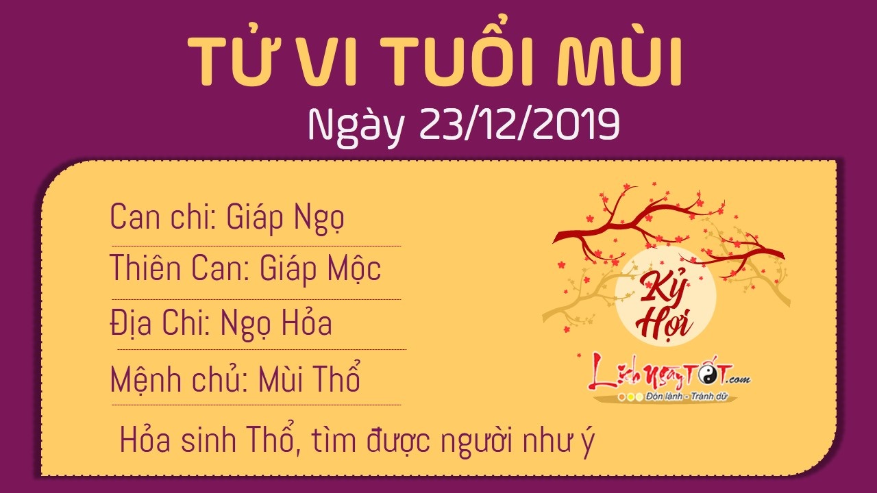 Hỏa sinh Thổ, người tuổi Mùi rất vượng đào hoa trong ngày hôm nay. Bạn được nhiều người chú ý nên nếu còn độc thân, bạn hãy tranh thủ cơ hội này để trò chuyện và mở lòng hơn với người khác. Rất có thể bạn sẽ tìm được người phù hợp với mình. Nếu đã lập gia đình, bản mệnh có một ngày yên bình. Bạn và nửa kia rất yêu thương nhau nên luôn giúp đỡ nhau mọi công việc trong nhà. Bạn luôn cảm thấy rằng chỉ khi ở nhà, mình mới được thư giãn thực sự. Chính Tài cho thấy nếu bạn thực hiện tốt công việc được giao trong ngày hôm nay thì rất dễ nhận được sự khen thưởng, động viên của cấp trên. Bạn có thể nhận được một khoản tiền thưởng kha khá để tích lũy vào tiền tiết kiệm.