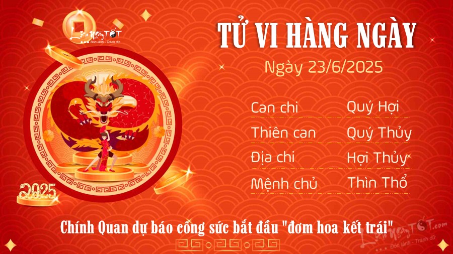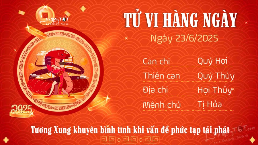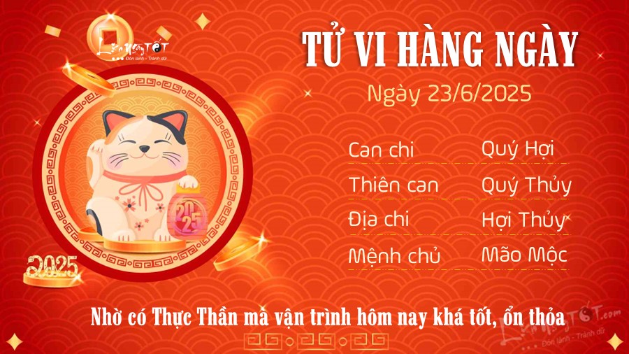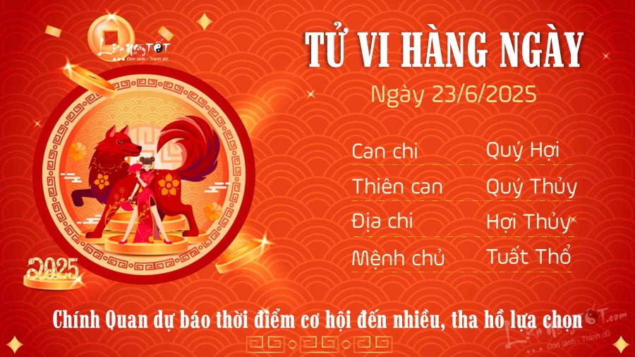 Chi tiết tử vi hàng ngày 23/6/2025 của 12 con giáp