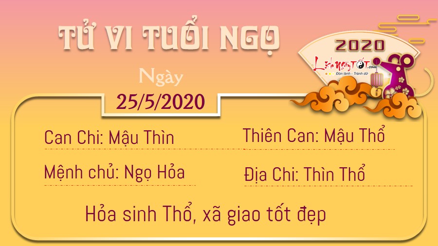 Hỏa sinh Thổ, người tuổi Ngọ xây dựng được những mối quan hệ xã giao tốt đẹp nhờ có tính cách cởi mở, phóng khoáng, sẵn sàng giúp đỡ mọi người. Bạn có quyền tin rằng nếu gặp khó khăn, mình chắc chắn cũng sẽ nhận được nhiều sự giúp đỡ của người khác. Trong gia đình, bản mệnh luôn quan tâm đến nửa kia, do đó đôi bên không bao giờ cãi vã nặng lời với nhau, dù đôi bên có ý kiến trái chiều đi chăng nữa. Cứ duy trì được tình cảm như hiện giờ, hai người có thể cùng nhau vượt qua mọi sóng gió trong cuộc đời. Hôm nay trực Bế là ngày không tốt để thực hiện đa số mọi việc, trừ lấp hố rãnh, đắp đê.